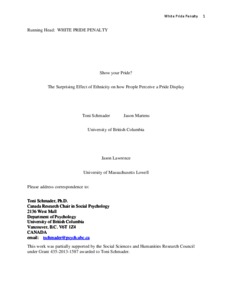Schmader, Toni and Martens, Jason and Lawrence, Jason S. (2016) Show your pride? The surprising effect of race on how people perceive a pride display. Self and Identity, 16 (3). pp. 313-334. ISSN 1529-8868