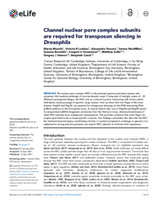Munafò, Marzia and Lawless, Victoria R and Passera, Alessandro and MacMillan, Serena and Bornelöv, Susanne and Haussmann, Irmgard U. and Soller, Matthias and Hannon, Gregory J and Czech, Benjamin (2021) Channel nuclear pore complex subunits are required for transposon silencing in Drosophila. eLife, 10. e66321. ISSN 2050-084X