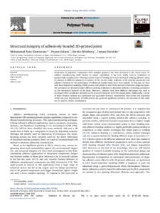 Khosravani, Mohammad Reza and Soltani, Payam and Weinberg, Kerstin and Reinicke, Tamara (2021) Structural integrity of adhesively bonded 3D-printed joints. Polymer Testing, 100. ISSN 0142-9418