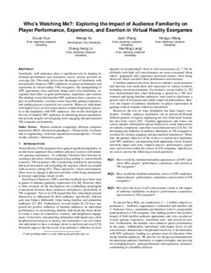 Guo, Zixuan and Xu, Wenge and Zhang, Jialin and Wang, Hongyu and Lo, Cheng-Hung and Liang, Hai-Ning (2023) Who’s Watching Me?: Exploring the Impact of Audience Familiarity on Player Performance, Experience, and Exertion in Virtual Reality Exergames. In: 2023 International Symposium on Mixed and Augmented Reality, 16th - 20th October 2023, Sydney, Australia.