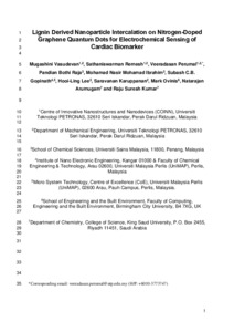 Vasudevan, Mugashini and Remesh, Sathaniswarman and Perumal, Veeradasan and Bothi Raja, Pandian and Mohamad Ibrahim, Mohamad Nasir and CB Gopinath, Subash and Lee, Hooi-Ling and Karuppanan, Saravanan and Ovinis, Mark and Arumugam, Natarajan and Suresh Kumar, Raju (2023) Lignin derived nanoparticle intercalation on nitrogen-doped graphene quantum dots for electrochemical sensing of cardiac biomarker. Microchemical Journal, 195. ISSN 0026-265X