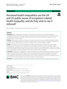 Bridger, Emma K. and Tufte-Hewett, Angela and Comerford, David A. (2023) Perceived health inequalities: Are the UK and US public aware of occupation-related health inequality, and do they wish to see it reduced? BMC Public Health, 23. ISSN 1471-2458