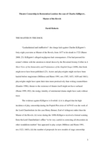 Roberts, David (2025) Theatre Censorship in Restoration London: the case of Charles Killigrew, Master of the Revels. In: The Palgrave Handbook of Theatre Censorship. Palgrave Macmillan. ISBN 9783031672989