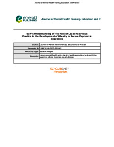 Semmens-Wheeler, Rebecca and Lloyd, Anna and Alfaraj, A. and Narando, D. (2024) Staff's Understanding of The Role of Least Restrictive Practice in the Development of Obesity in Secure Psychiatric Inpatients. Journal of Mental Health Training, Education and Practice. ISSN 1755-6228