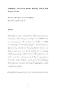 Gee, Matt and Kehoe, Andrew and Renouf, Antoinette (2024) Establishing a ‘new normal’: detecting fluctuating trends in word frequency over time. In: Crossing Boundaries through Corpora. Innovative corpus approaches within and beyond linguistics. Studies in Corpus Linguistics, 119 . John Benjamins, pp. 125-152. ISBN 9789027215949