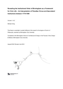 Dring, Michael (2024) Revealing the Institutional Order of Birmingham as a Framework for Civic Life : An Interpretation of Paradise Circus and Associated Institutions between 1779-1980. Doctoral thesis, Birmingham City University.