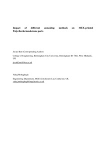 Butt, Javaid and Mohaghegh, Vahaj (2025) Impact of different annealing methods on MEX-printed polyetherketoneketone parts. The International Journal of Advanced Manufacturing Technology, 137 (9-10). pp. 5059-5080. ISSN 0268-3768