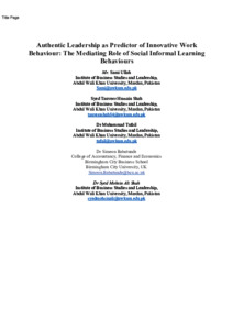 Ullah, Sami and Shah, Syed Tanveer Hussain and Tufail, Muhammad and Babatunde, Simeon A. and Shah, Syed Mohsin Ali (2025) Authentic Leadership as Predictor of Innovative Work Behavior: The Mediating Role of Social Informal Learning Behaviors. Journal of the Knowledge Economy. ISSN 1868-7873
