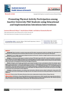 Bismarck Ndupu, Lawrence and Quinn - Walker, Natalie and Barrett, Kathryn Szymanska (2025) Promoting Physical Activity Participation among Inactive University PhD Students using Educational and Implementation Intentions Interventions. Academic Journal of Health Sciences & Research. ISSN 3067-0136