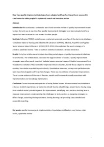 Introduction We conducted a systematic search and narrative review of quality improvement in care homes. Our aim was to examine how quality improvement strategies have been adopted and how impact has been assessed in care homes for older people.