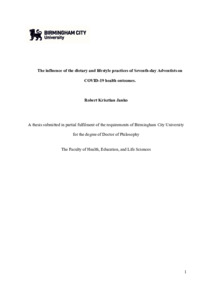Janko, Robert K. (2025) The Influence of the Dietary and Lifestyle Practices of Seventh-Day Adventists on COVID-19 Health Outcomes. Doctoral thesis, Birmingham City University.
