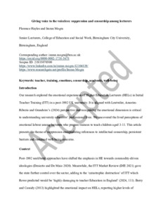Hayles, Florence and Mogra, Imran (2025) Giving voice to the voiceless: suppression and censorship among lecturers. Journal of Education for Teaching. pp. 1-4. ISSN 0260-7476