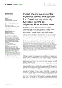 Abbassi-Daloii, Asieh and Hoteit, Maha and Sadek, Zahra and Khak-Rand, Mahboubeh and Ramezani, Akbar and Pashaei, Zhaleh and Afshar, Mahsa and Escobar, Kurt A. and Supriya, Rashmi and Saeidi, Ayoub and Zouhal, Hassane and Alkhatib, Ahmad (2025) Impact of using supplemented thylakoids derived from spinach for 12 weeks of high-intensity functional training on adipo-myokines in obese males. Frontiers in Nutrition, 12. ISSN 2296-861X