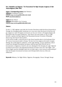 Uncontrolled Keywords: | Pederasty, Far-Right Politics, Paganism, Pornography, France, Portugal, Europe |