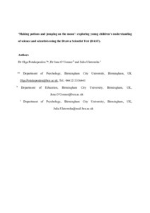 Fotakopoulou, Olga and O'Connor, Jane and Ulatowska, Julia (2025) ‘Making potions and jumping on the moon’: exploring young children’s understanding of science and scientists using the Draw a Scientist Test (DAST). European Early Childhood Education Research Journal. ISSN 1350-293X
