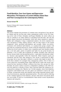 Forkert, Kirsten (2025) Fixed Identities, Zero-Sum Games and Oppression Hierarchies: The Impasses of Current Debates About Race and Their Consequences for Contemporary Politics. International Journal of Politics, Culture, and Society. ISSN 0891-4486