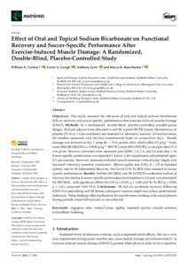 Gurton, William H. and Gough, Lewis A. and Lynn, Anthony and Ranchordas, Mayur K. (2025) Effect of Oral and Topical Sodium Bicarbonate on Functional Recovery and Soccer-Specific Performance After Exercise-Induced Muscle Damage: A Randomized, Double-Blind, Placebo-Controlled Study. Nutrients, 17 (21). ISSN 2072-6643