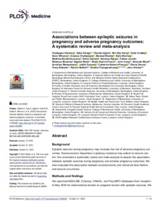 Olalere, Oladipupo and Tariq, Saba and Ajijola, Olanike and Koh, Min-Dee and Crabb, Katie and Wilson, Amie and Chatterjee, Anwesa and Black, Mairead and Morris, Katie and Bluett-Duncan, Matthew and Taylor, Emily and Raju, Sereena and Junaid, Fatima and Bromley, Rebecca and Moss, Ngawai and Garcia-Finana, Marta and Craig, John and Wood, Amanda and Weckesser, Annalise and Dyson, Judith and Nelson-Piercy, Catherine and Denny, Elaine and Roberts, Tracy and McNeill, Rachel and Thangaratinam, Shakila and Allotey, John (2025) Associations between epileptic seizures in pregnancy and adverse pregnancy outcomes: A systematic review and meta-analysis. PLOS Medicine, 22 (10). e1004580. ISSN 1549-1676