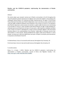 Breen, Damian and Awan, Imran (2025) Muslims and the COVID-19 pandemic: myth-busting the demonisation of Muslim communities. Journal of Ethnic and Migration Studies. pp. 1-20. ISSN 1369-183X