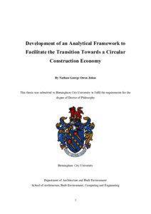 Johns, Nathan George Owen (2025) Development of an Analytical Framework to Facilitate the Transition Towards a Circular Construction Economy. Doctoral thesis, Birmingham City University.