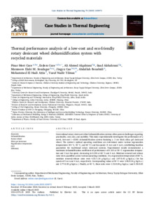 Cuce, Pinar Mert and Cuce, Erdem and Alqahtani, Ali Ahmed and Alshahrani, Saad and Soudagar, Manzoore Elahi M. and Cao, Jingyu and Bouabidi, Abdallah and Attia, Mohammed El Hadi and Yilmaz, Yusuf Nadir (2025) Thermal performance analysis of a low-cost and eco-friendly rotary desiccant wheel dehumidification system with recycled materials. Case Studies in Thermal Engineering, 70. p. 105973. ISSN 2214-157X