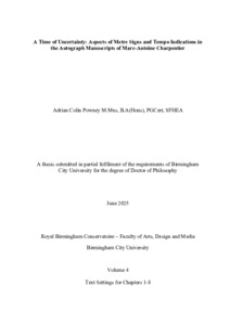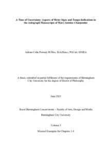 Powney, Adrian Colin (2025) A Time of Uncertainty: Aspects of Metre Signs and Tempo Indications in the Autograph Manuscripts of Marc-Antoine Charpentier. Doctoral thesis, Birmingham City University.