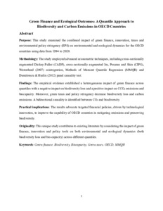 Uncontrolled Keywords: Green finance, Biodiversity, Biocapacity, Green taxes, OECD, MMQR