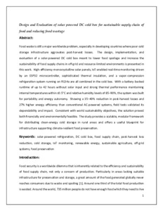 | Uncontrolled Keywords: | solar-powered refrigeration, DC cold box, food supply chain, post-harvest loss reduction, cold storage, IoT monitoring, renewable energy, sustainable agriculture, off-grid systems, food preservation |