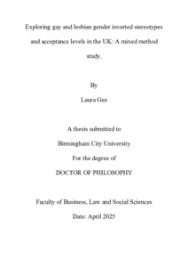 Gee, Laura (2026) Exploring Gay and Lesbian Gender Inverted Stereotypes and Acceptance Levels in the UK: A Mixed Method Study. Doctoral thesis, Birmingham City University.