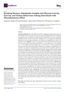 Skidmore, Annabelle G. and MacDonald, Anita and Herbert, Adam J. and Lewis, Kiara and Gough, Lewis A. (2026) Breaking Barriers: Stakeholder Insights into Physical Activity, Exercise, and Dietary Behaviours Among Individuals with Phenylketonuria (PKU). Healthcare, 14 (4). p. 440. ISSN 2227-9032