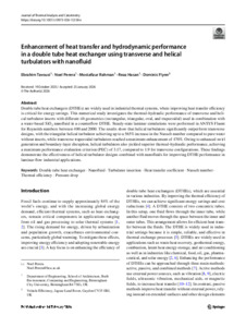 Tavousi, Ebrahim and Perera, Noel and Rahman, Mostafizur and Hasan, Reaz and Flynn, Dominic (2026) Enhancement of heat transfer and hydrodynamic performance in a double tube heat exchanger using transverse and helical turbulators with nanofluid. Journal of Thermal Analysis and Calorimetry. ISSN 1388-6150