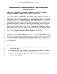 Chen, Jianxun and Gao, Jinliang and Wang, Wei and Wu, Wenyan and Cao, Shihua and Qi, Shihua and Yu, Jingyang and Huang, Yongfeng and Zheng, Wei and Li, Yuanzhe and Hu, Shiyuan (2026) Solute Migration Mechanisms and Decay Modelling in Dead End Pipes of Water Distribution Networks. Water Resources Research, 62 (4). ISSN 0043-1397