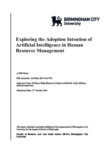 Phan, Anh (2026) Exploring the Adoption Intention of Artificial Intelligence in Human Resource Management. Doctoral thesis, Birmingham City University.