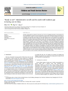 Yin, Shian and Yu, Ting and Li, Jing (2026) “Ready or not?” Administrative cut-offs and the youth–staff readiness gap in leaving care in China. Children and Youth Services Review, 185. p. 108946. ISSN 0190-7409