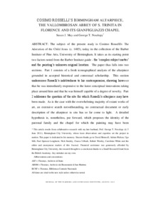 Noszlopy, George T. and May, Susan (2015) Cosimo Rosselli's Birmingham altarpiece, the Vallombrosan Abbey of S. Trinita in Florence and its Gianfigliazzi Chapel. Journal of the Warburg and Courtauld Institutes, 78. pp. 97-133. ISSN 0075-4390