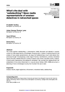 Yardley, Elizabeth and Lynes, Adam and Wilson, David and Kelly, Emma (2016) What’s the deal with ‘websleuthing’? News media representations of amateur detectives in networked spaces. Crime, Media, Culture, 14. pp. 81-109. ISSN 1741-6590
