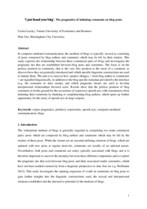 | Uncontrolled Keywords: | corpus pragmatics, prefatory expressions, speech acts, computer-mediated communication, blogs |